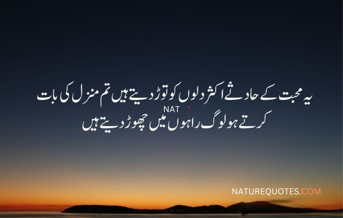 یہ محبت کے حادثے اکثر دلوں کو توڑ دیتے ہیں تم منزل کی بات کرتے ہو لوگ راہوں میں چھوڑ دیتے ہیں